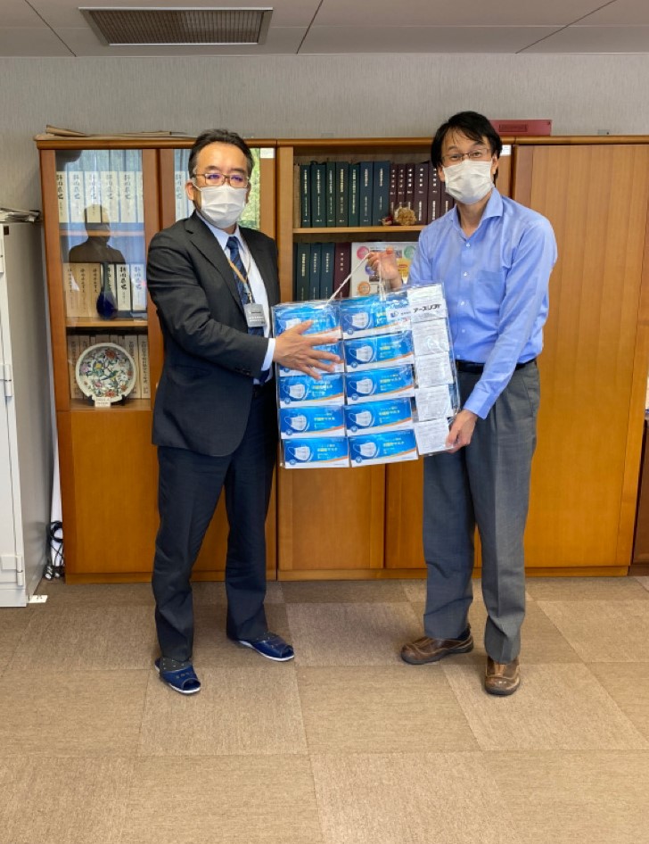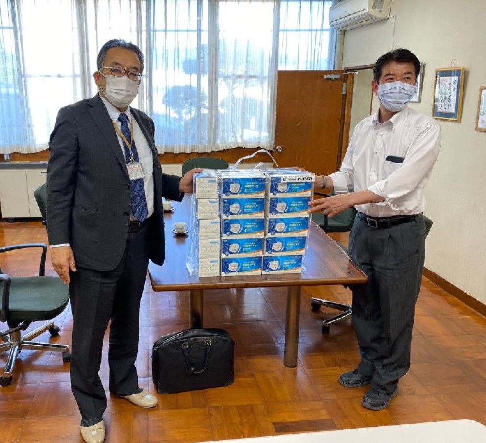 使い捨てマスク5,000枚を贈呈させていただきました。