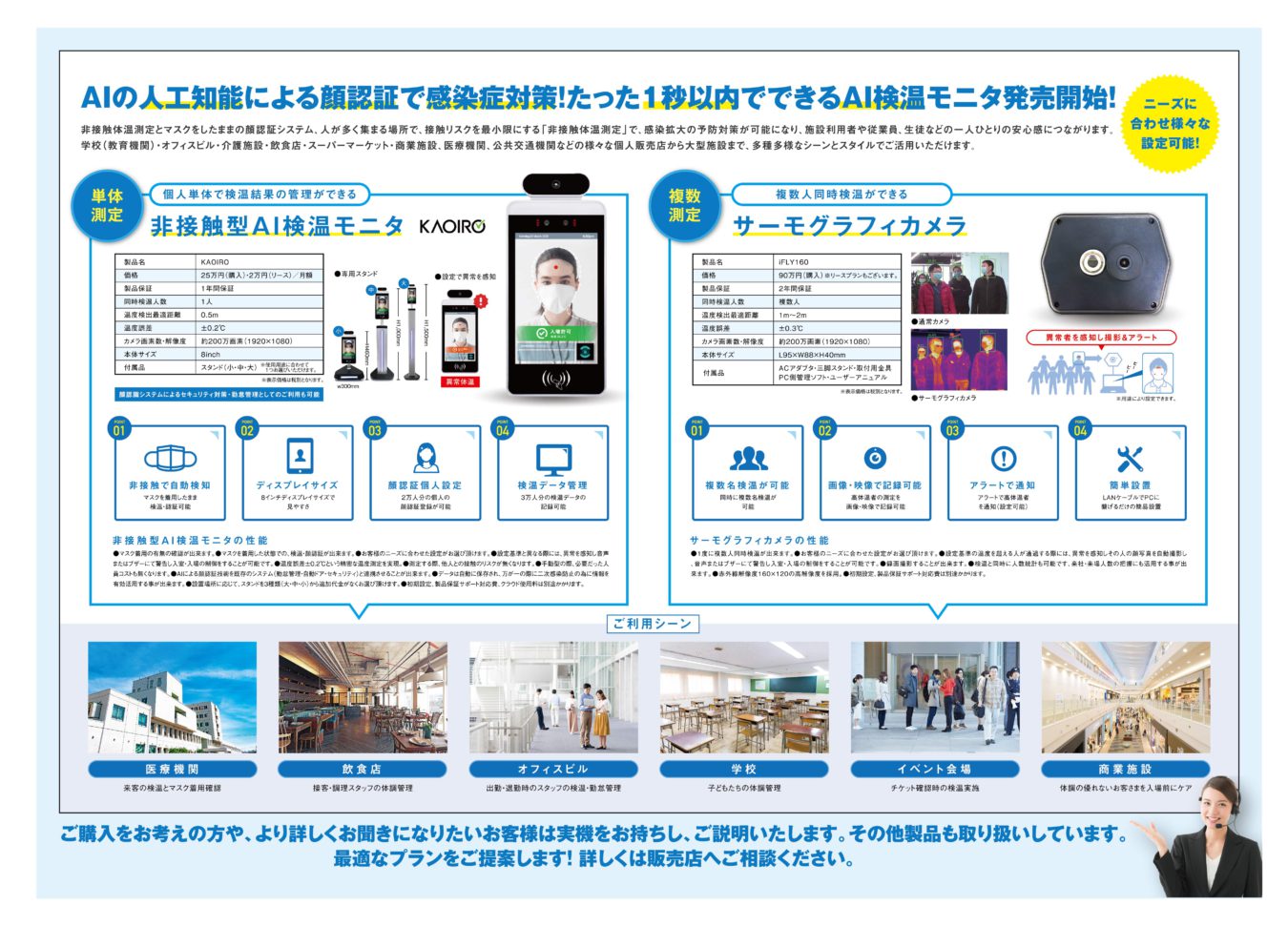 企業・店舗・病院に安心を顔認証付きAI検温モニタ販売開始!!