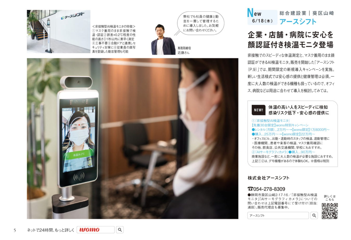 今では生活に欠かせない『非接触型AI検温モニタ』の特設ページも同時掲載!