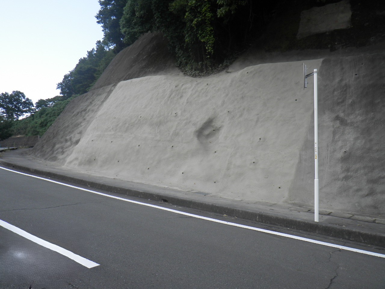 バスクと呼ばれるガラス短繊維補強樹脂セメントモルタルを使用し、既設モルタル吹付法面を再生する工法です。伸縮性と密着性、接着性が高いバスクの特性を活かし、劣化した既設モルタル吹き付け面の亀裂補修、背面の空洞を充填し、法面を長期的に保護します。